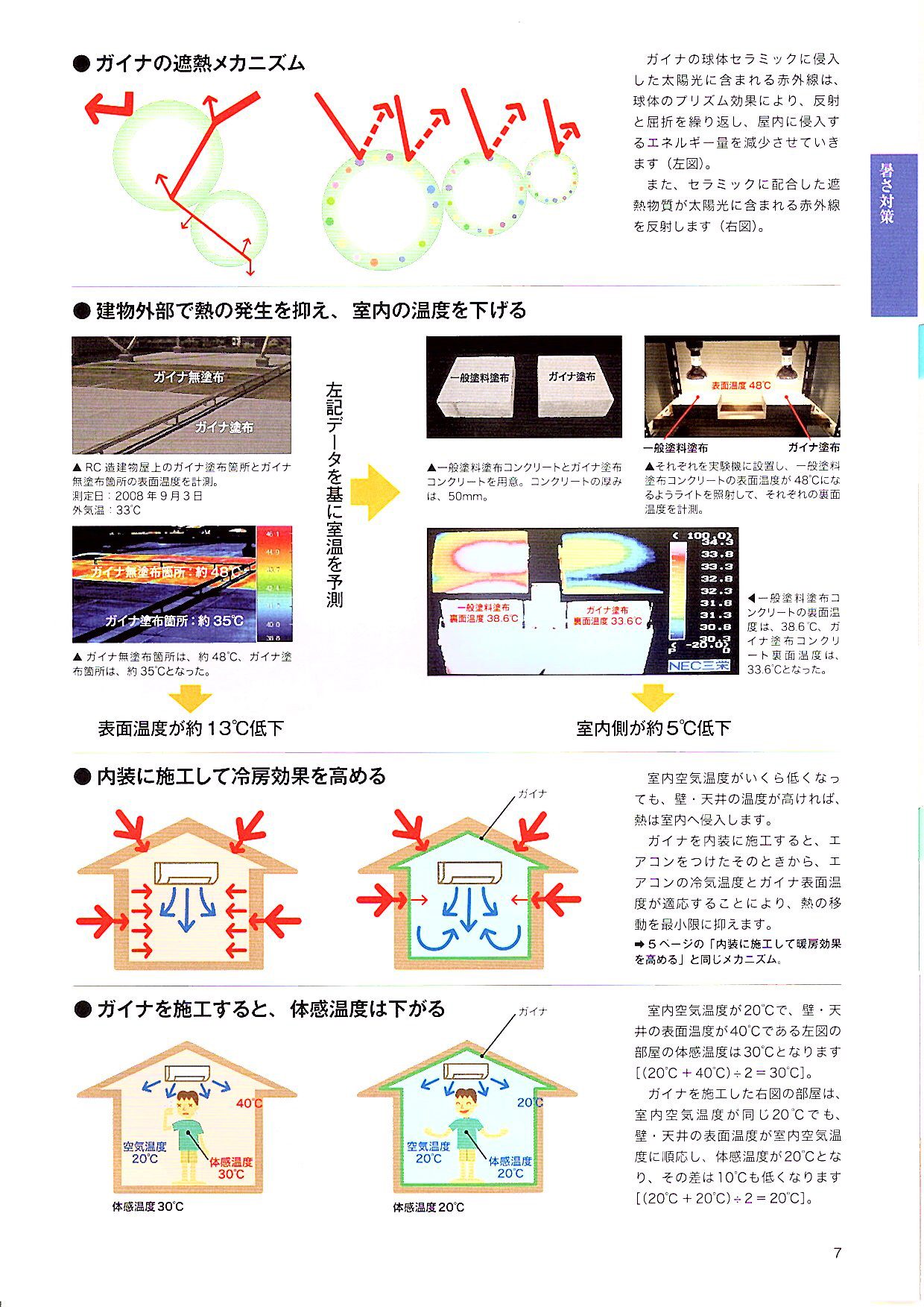 また、セラミックに配合した遮熱ぐっしつが太陽光に含まれる赤外線を反射します。