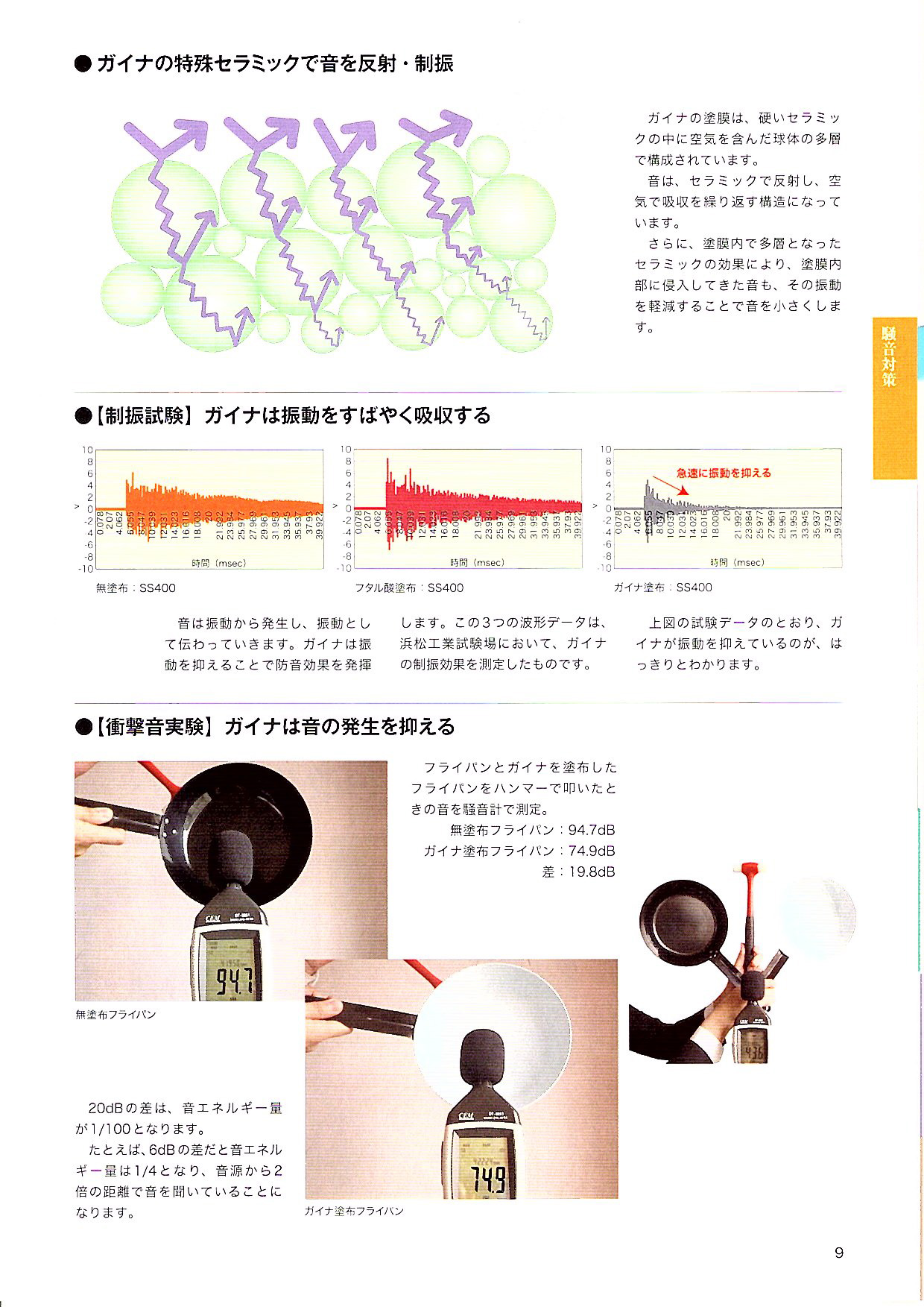 さらに、塗膜内で多層となったセラミックの効果により、塗膜内部に侵入してきた音も、その振動を軽減することで音を小さくします。